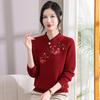 Middle-aged and Elderly Women's Clothing with Velvet Thickened Integrated Velvet Cheongsam Collar Tops for Mothers' Wear Warm Sweater