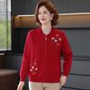 Versatile Thread Coat Grandma Coat Spring and Autumn Sweater Mother Cardigan Old Man Round Neck Embroidered Knitted Sweater