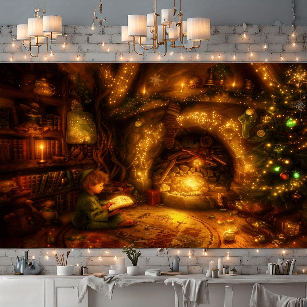 Weihnachts-Kamin Wandbehang Wandteppich Weihnachts-Wandbehang Baum Wandbehang Wunderschöner Weihnachtsbaum Kamin Geschenke