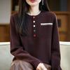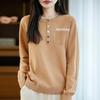 Neuer Herbst- und Winter-Rundhals-Damenstrickpullover mit farbigen Knöpfen, zweiteilig, mit dekorativen Strick-Basisschichten mit Taschen