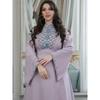 Dubai Indonesia Amazon Middle East Women's Clothing Patchwork Contrast Color Stand-up Collar Rhinestone Robe Gown Dress Dress