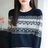Ein langärmliger, herzförmiger Jacquard-Pullover für Damen, ein neuer Retro-Rundhalspullover für den Frühherbst