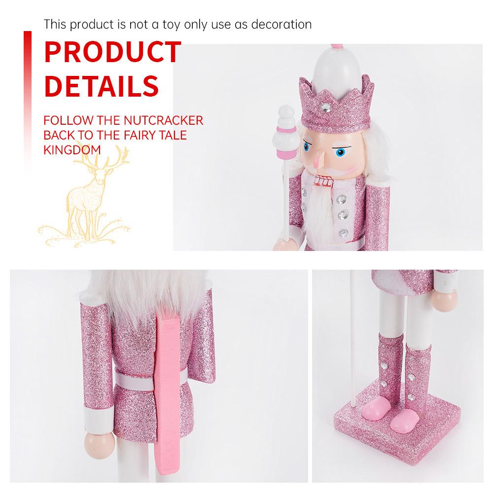 30CM Holz Nussknacker Soldat Figur Puppe Rosa Glitter Soldat Puppe Spielzeug Handwerk Ornament Weihnachten Home Büro Dekoration