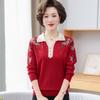 Mom lapel knitted sweater medium and old spring long-sleeved sweater bottoming shirt middle-aged women's new thin sweater