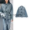 Spring New Women clothes French style Strap Decoration Long sleeve With Belt Lapel Denim Jacket 8197072