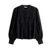 Spring and Summer New Women's Clothing Lace Inlaid Chinese Stand Collar Bubble Long Sleeve Fine Pleated Decorative Shirt 1281837