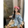 Kumikumi French style Blue off-Neck Long sleeve dress Women Autumn Temperament Chic off-Shoulder Hip Skirt Short dress
