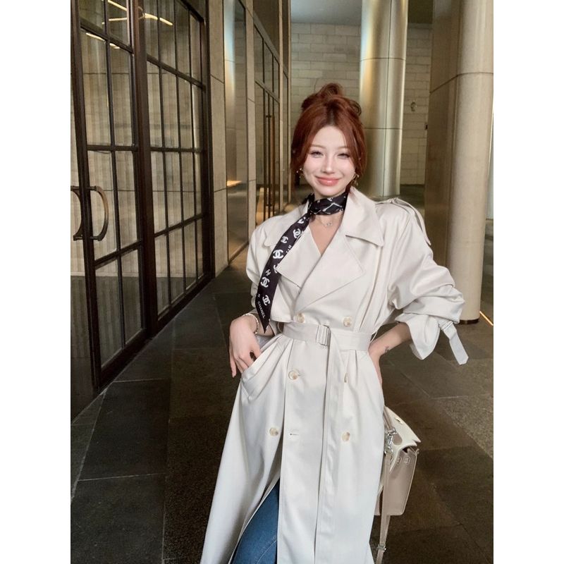 Kumikumi British Style Temperament Creamy-white Trench coat Outerwear Women clothes Autumn Double Breasted Loose Mid-Length Coat