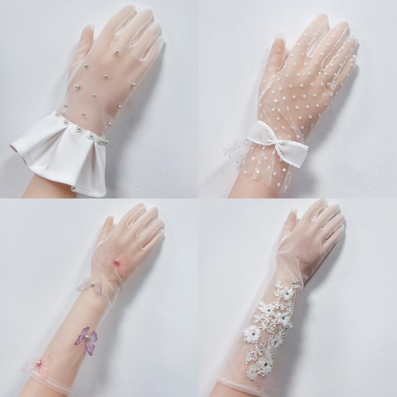 Weiße Braut Hochzeitskleid Fingerhandschuhe Spitze Mesh Kurz Dünn Transparent Handschuhe Exquisite Deko Accessoires Handschuhe