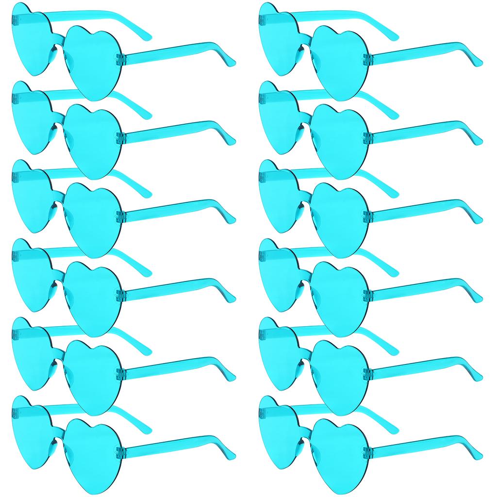 Piaopiaoniu 12 Stück Herzförmige Sonnenbrillen Blau Transparent Rahmenlos Hippie-Sonnenbrillen für Junggesellinnenabschied Frauen