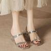 H368-1 Silberne High-Heel-Slipper mit Strass-Dekoration, Zehenoffene Sommersandalen für Damen, Transparenter Kristallabsatz, Kleiner Duft