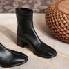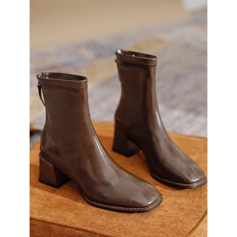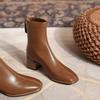 Riesen Komfort Nische Quadratkopf Außergewöhnliche Britische Mittelhohe Stiefel Braun Dicker Absatz Skinny Stiefel Damen Kugel