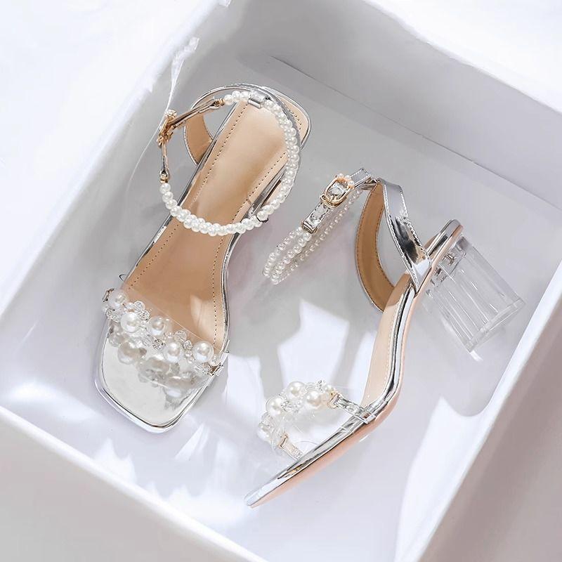 Sandalen Damen Sommer 2025 neu Französisches Temperament Society-Lady transparent Kristall dicker Absatz vielseitig nicht müde von High Heels