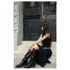 Spitze Hottie Grober Absatz Ritterstiefel Schwarz Punk-Stil Nischen-Persönlichkeit Stiefel Damen Retro