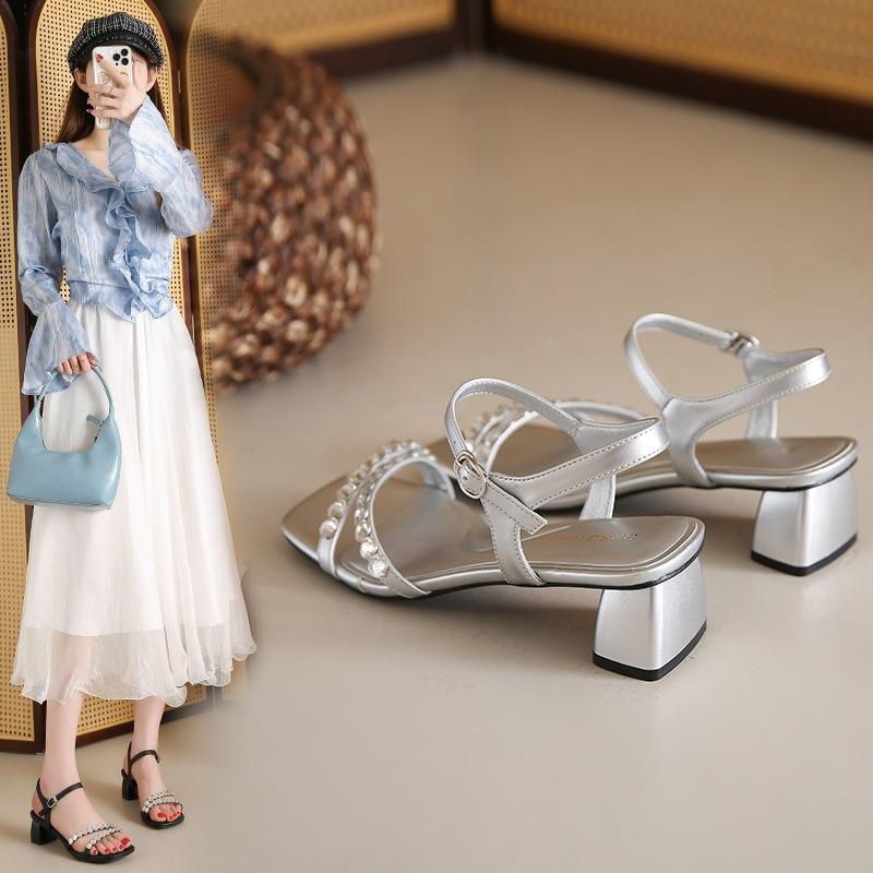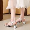 Mit Rock Strass Sandalen Damen Dicke Ferse Neu Sommer tragen Ein-Wort Schnalle High Heels