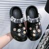 Neue Taschenkopf-Sandalen Damen Sommer Halbschlappen Außentrage dicksohlig mittlerer Absatz rutschfest Lochschuhe Großkopf Damenschuhe