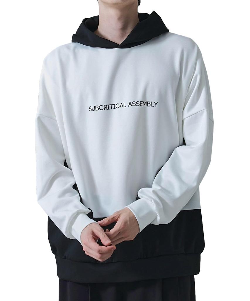 WEGO Dolman Ponte Long Sleeve Casual Korean Loose Size White Men's Hoodie, T-Shirt, Hooded, Button-Down Clothing, Style, Simple, Fit, Oversized,
