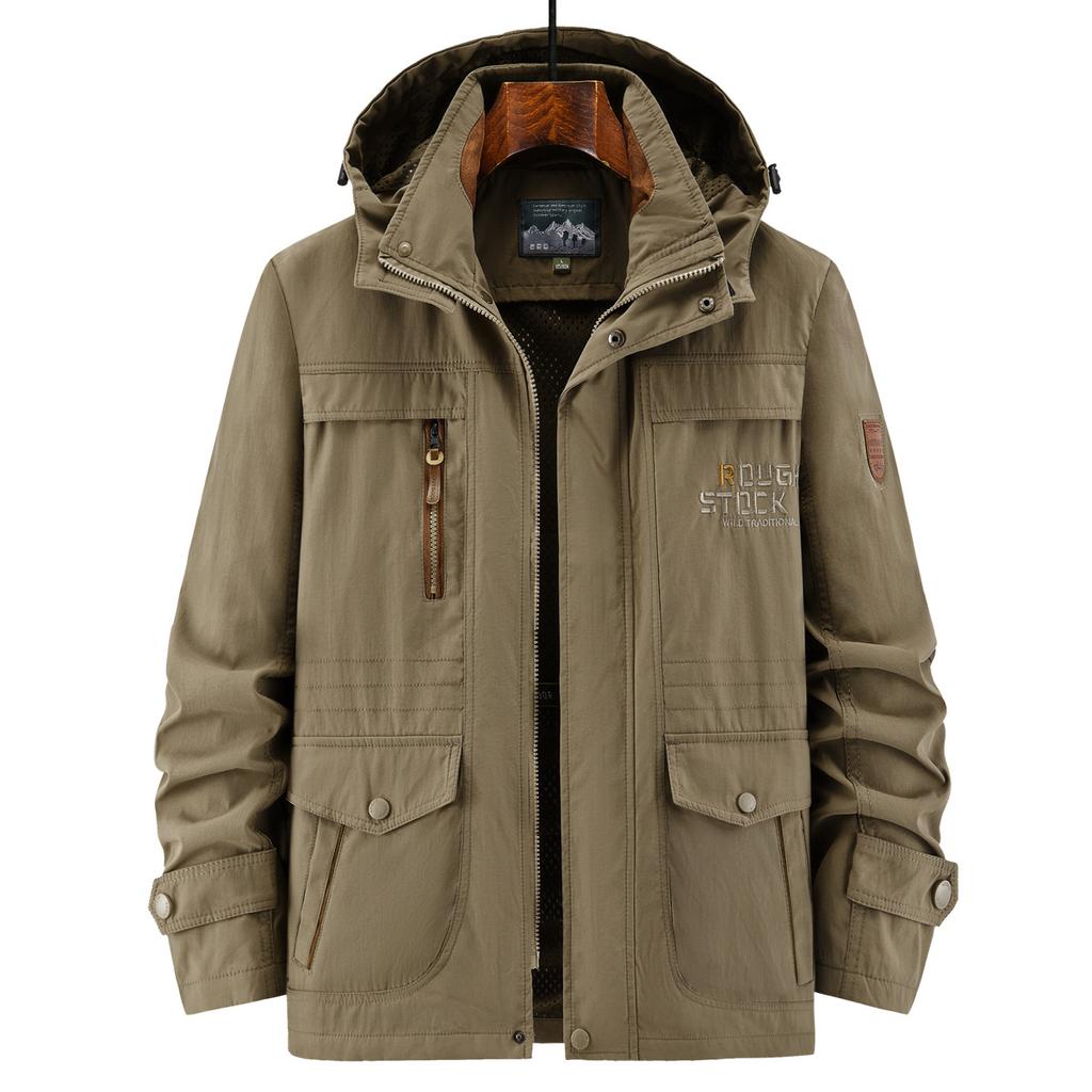 Jacke in Übergröße Herren Baumwolljacke Herbst Dünn Outdoor Winddicht Mehrfach-Taschen Anzug