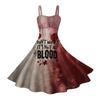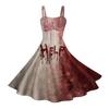 Damen Vintage Ärmellos Plissiert Patchwork Niedlich A-Linien Saum Halloween Bedruckte Kleider