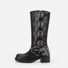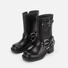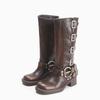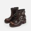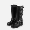 Polierte Retro-Western-Cowboystiefel Ritterstiefel dicker Absatz mittelhohe Zigarettenstiefel 2025 neue eckige Spitze Lokomotivstiefel