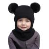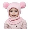 Bommel Baby Wintermütze Schal Einteiler Kinder Strickmütze Warme Ohren Hals Kinder Motorhaube Säuglingsmütze für Mädchen Jungen 1-5 Jahre