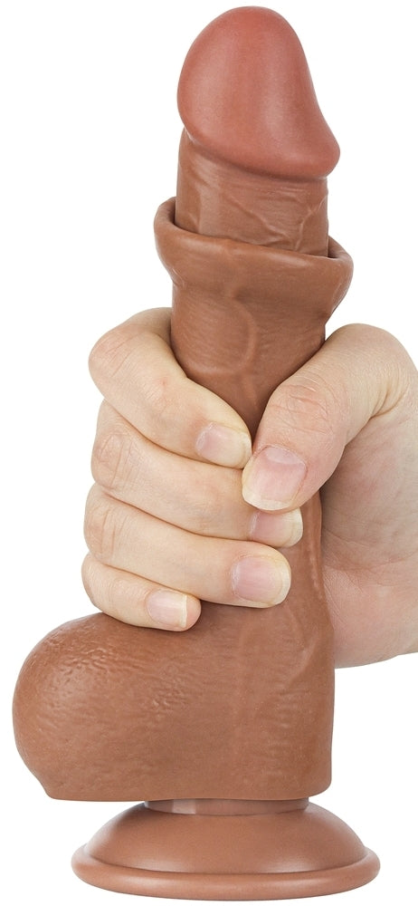 Gode avec Bourses Sliding Skin 13 x 3.8cm Marron - LoveToy SlidingSkin - Godes Réalistes