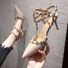 Summer pointed high heels women's 2025 new 42 large size niche sandals women's bag head rivets versatile