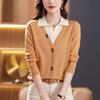 Spring new commuter lapel fake two-piece color matching diagonal buckle design comfortable light mother sweater women