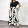 Übergröße Color-Block A-Linien-Kleid - Kurzärmlig, Schlankmachend, Vielseitig, Europäischer & Amerikanischer Stil für Frühling/Sommer
