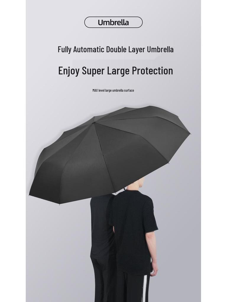High-End 10-Rib Automatic Double Folding Windproof Umbrella for Sun and Rain