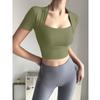 Damen Schnelltrocknendes Fitness-Set: Fake Zweiteiler mit Brustpolstern, Enganliegend, Kurzärmelig, Atmungsaktives Sportoberteil.