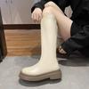 Modische mittelhohe lange Stiefel für Damen Heiß Neu im Trend 2024 Übergang Arbeit Wasserdicht Winter Neuheit PU Kniehoher Schaft Schuhe Frau