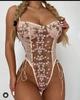 Spitze Florale Stickerei Trägerbody Durchsichtig