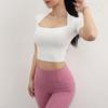 Damen Quick-Dry Yoga T-Shirt mit Nude-Feeling und herausnehmbaren Polstern