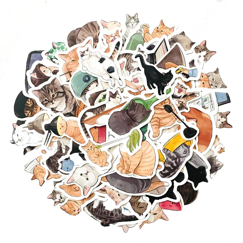 Niedliche Kätzchen Handgezeichnete Aufkleber - 54 Wasserdichte Abziehbilder für Tagebuch, Koffer, Skateboard, Helm