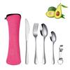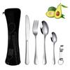 Stainless Steel Travel Cutlery Set: Knife, Fork, Spoon, Bottle Opener with Portable Storage Bag for Outdoor Camping