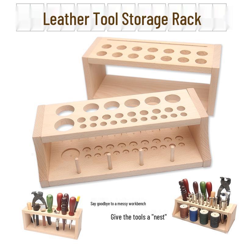 Buchenholz Mehrloch Werkzeughalter & Aufbewahrungsbox für Leder Nähwerkzeuge