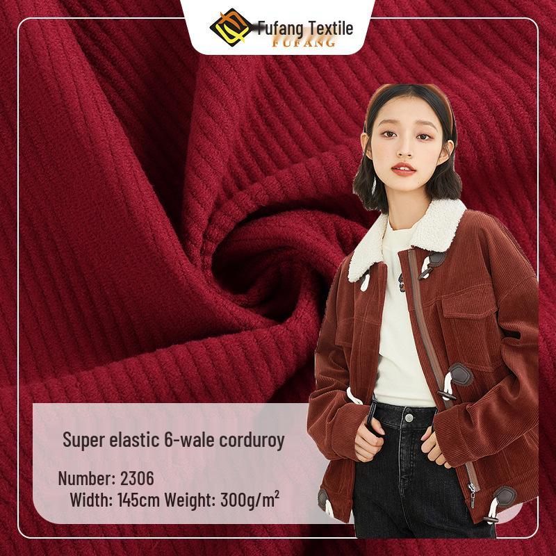 Superelastischer 6-Rippen-Kord, Hochelastisches Polyester-Imitations-Baumwollgewebe für Hosen, Taschen, Oberbekleidung, Hüte und Schuhe.