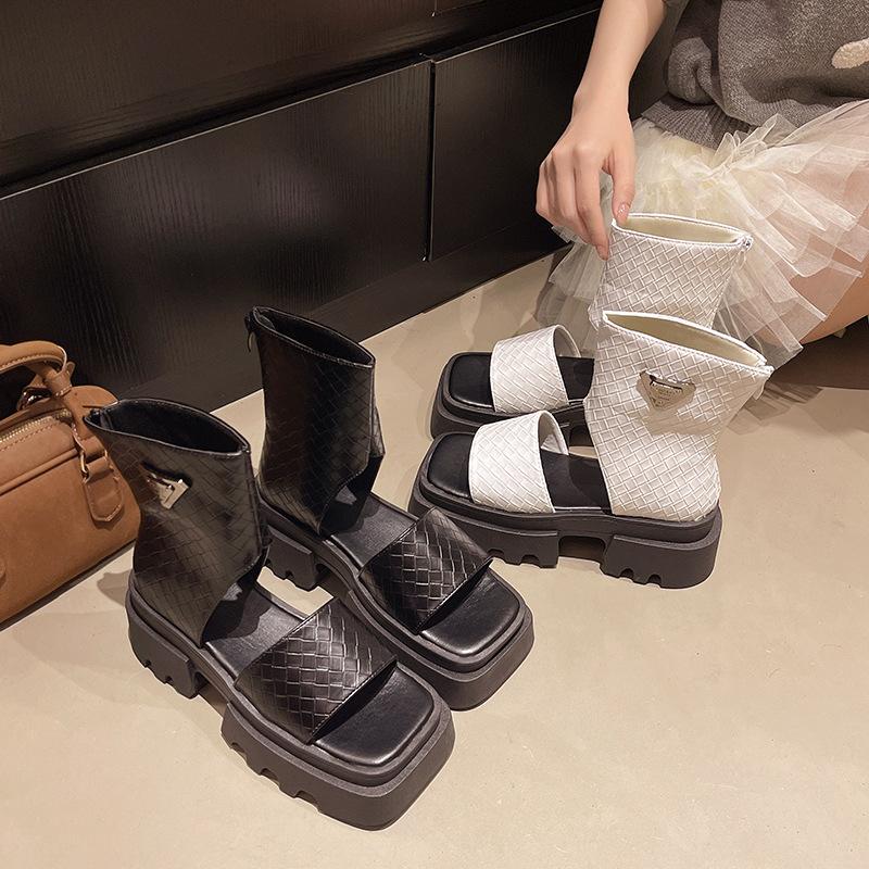 Muffin-Sohle Zehenfrei Kurzer Schaft Ausgehöhlte Martin-Stiefel Damen Sommer 2025 Neue Gewebte Römersandalen Kinder