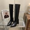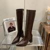 Braune hochhackige Ritterstiefel 2025 neue Mode Temperament spitze Zehen dicker Absatz aber Kniestiefel Damen schlanke hohe Stiefel
