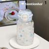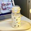 600 ml Stern Wasserflasche Becher für Eiskaffee Saft Tee Niedliche Schleife Plastikbecher mit Strohhalm Deckel Tragbare Trinkflasche