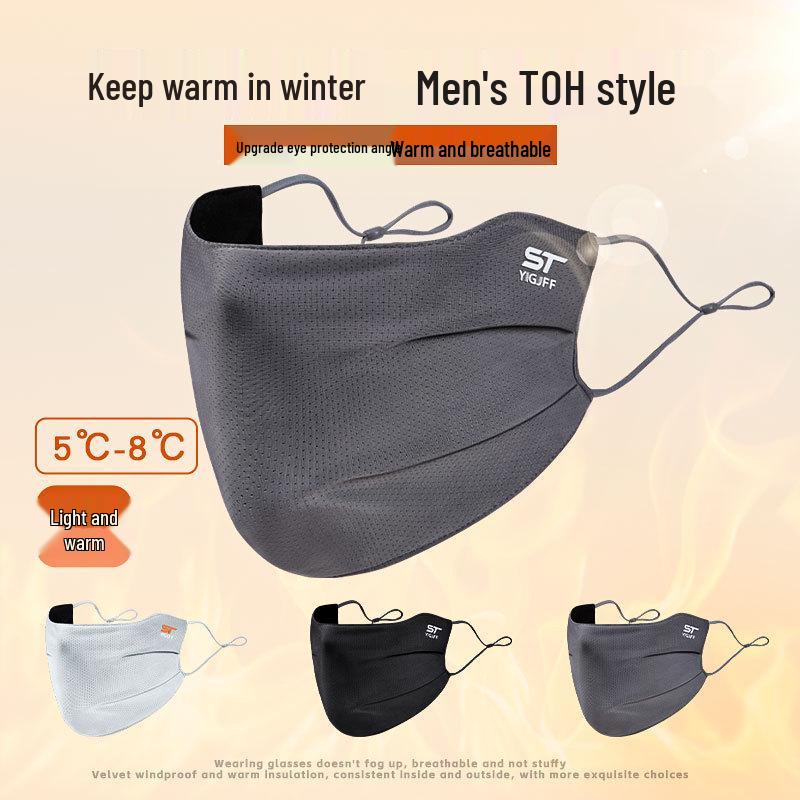 Atmungsaktive Herren-Fahr- und Radmaske mit Windschutz, Sonnenschutz und Augenschutz – Verdickt für Herbst/Winter, Samtfutter, Extra groß, Eisseide.
