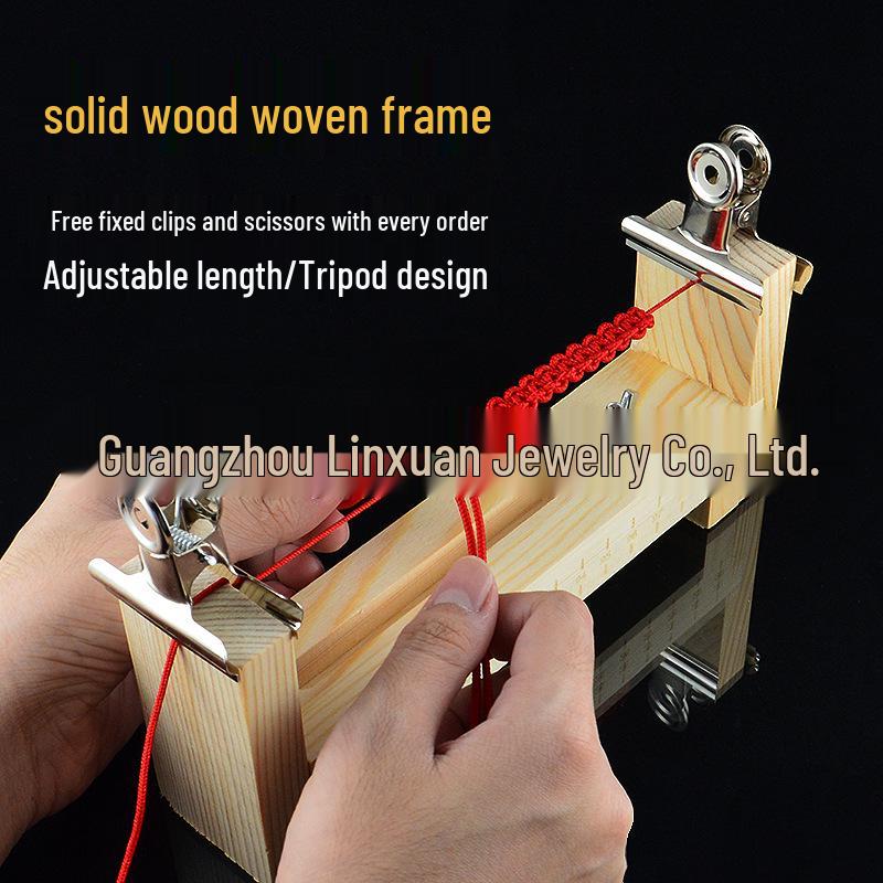 Handmade DIY Red Rope Bracelet Weaving Tool – Beginner's Solid Wood Frame for Jewelry Crafting