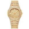 Damen Diamantbesetzte Goldene Mode Quadratische Uhr mit Strass-Kalender & Stahlband