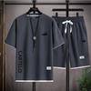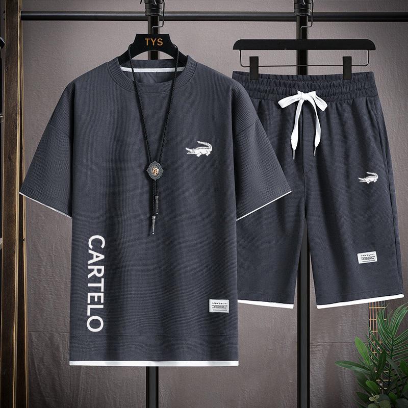 2025 Sommer Herren Faux Zweiteiler Waffel T-Shirt & Shorts Freizeit Sport Set
