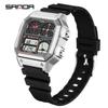 Sanda Temu Temperaturmessung Studenten Sportuhr, Wasserdicht Dual-Display, Multifunktionales Quadratisches Design