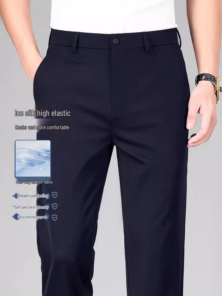 Herren Eisseide Stretch Business Casual Anzughose – Mittleren Alters, Einfarbig, Bügelfreie Hose
