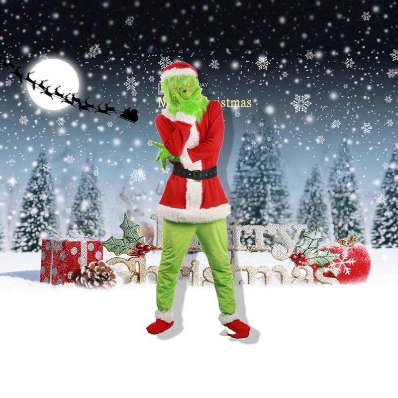 Weihnachtskleidung Accessoires Kinder grünes Haar Monster Grinch Kostüm Maske Kapuze Partykostüm