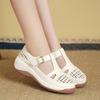 Weiße Taschenkopf-Sandalen aus weichem Leder für Damen 2025 neu Sommer gewebt hohl dicksohliger Keilabsatz weichsohlige Damen-Freizeitschuhe