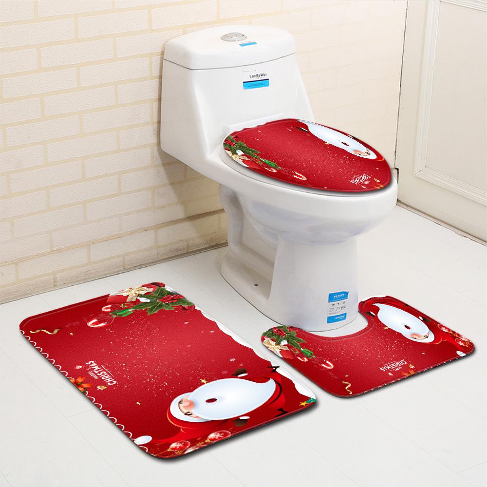 Christmas Bathroom Floor Mat Toilet Three-Piece Set